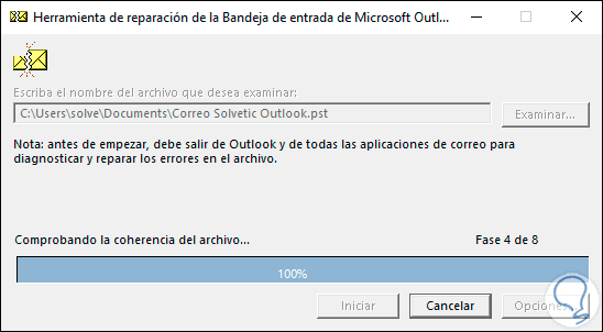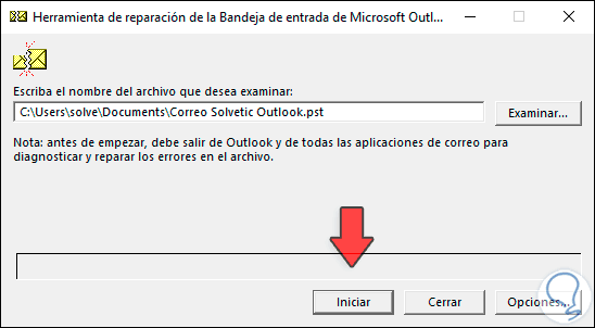 Damos clic en “Iniciar” para ejecutar el análisis y reparación del archivo .pst de Outlook: