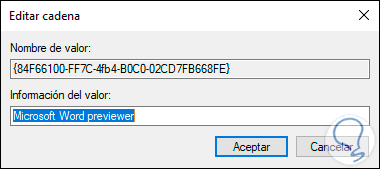 Damos doble clic sobre este valor de cadena y en el campo “Información del valor” ingresamos lo siguiente: