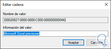 Damos clic en Aceptar y ahora creamos un valor de cadena para Excel llamado: