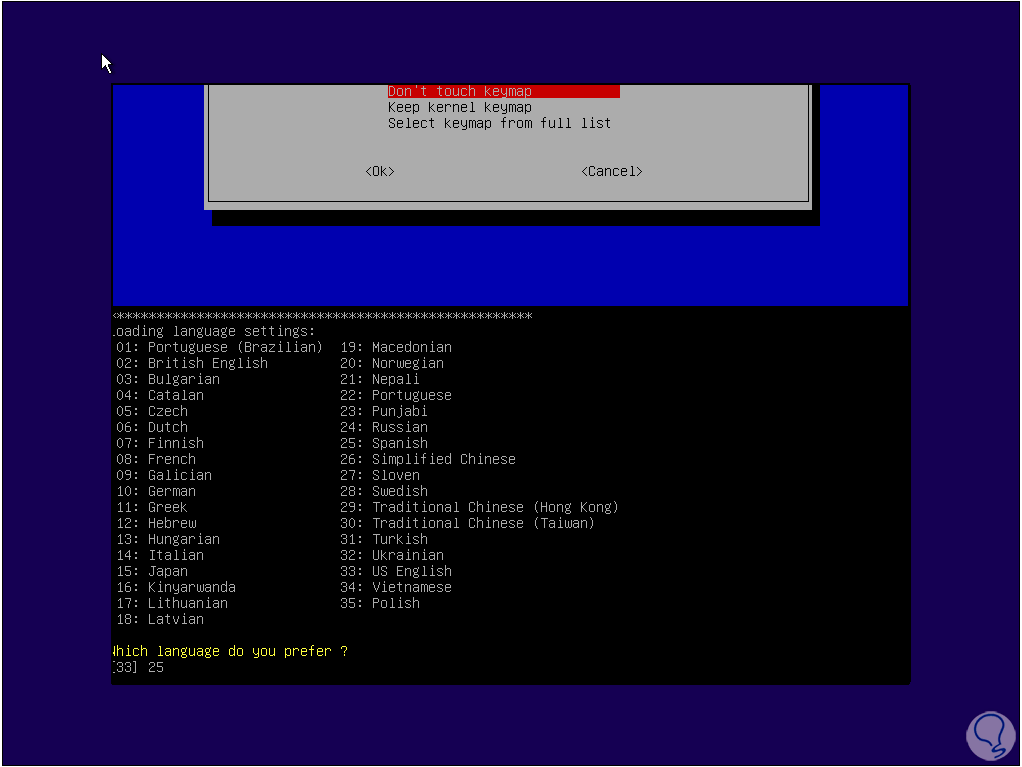 Seleccionamos la opción por defecto y luego establecemos el idioma a usar: