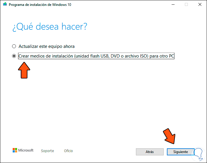 Damos clic en Aceptar y luego de ello debemos activar la casilla “Crear medios de instalación”: