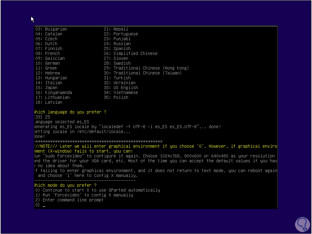 Posterior a ello podemos acceder a Gparted de forma gráfica (GUI) o con línea de comandos: