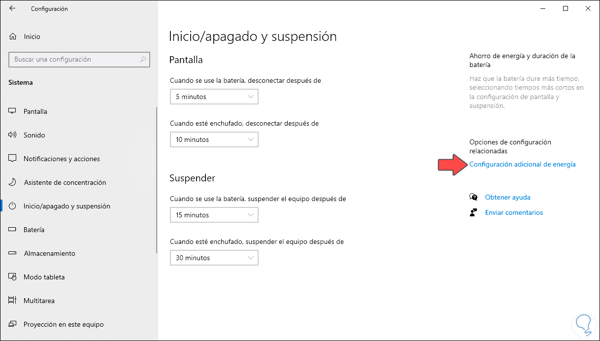 Allí vamos a la categoría “Sistema” y en la siguiente ventana iremos a la sección “inicio/apagado y suspensión”: