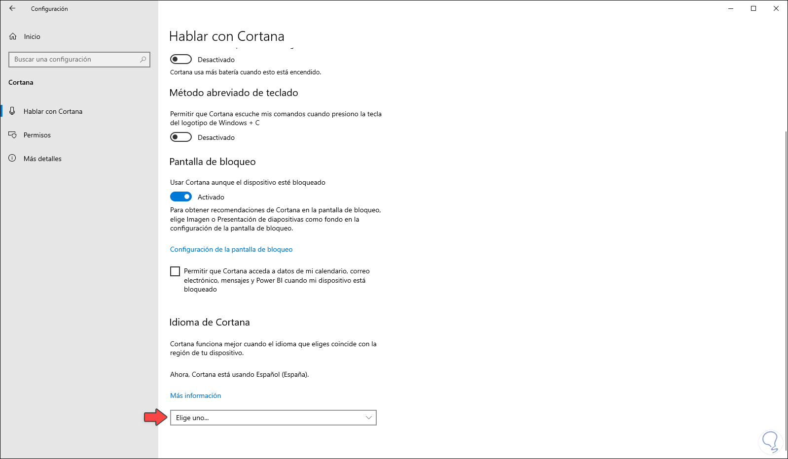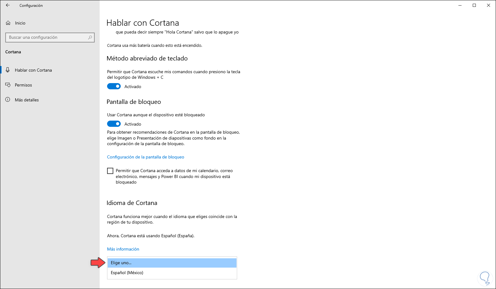 2. Cambiar idioma Cortana Windows 10 desde Configuración