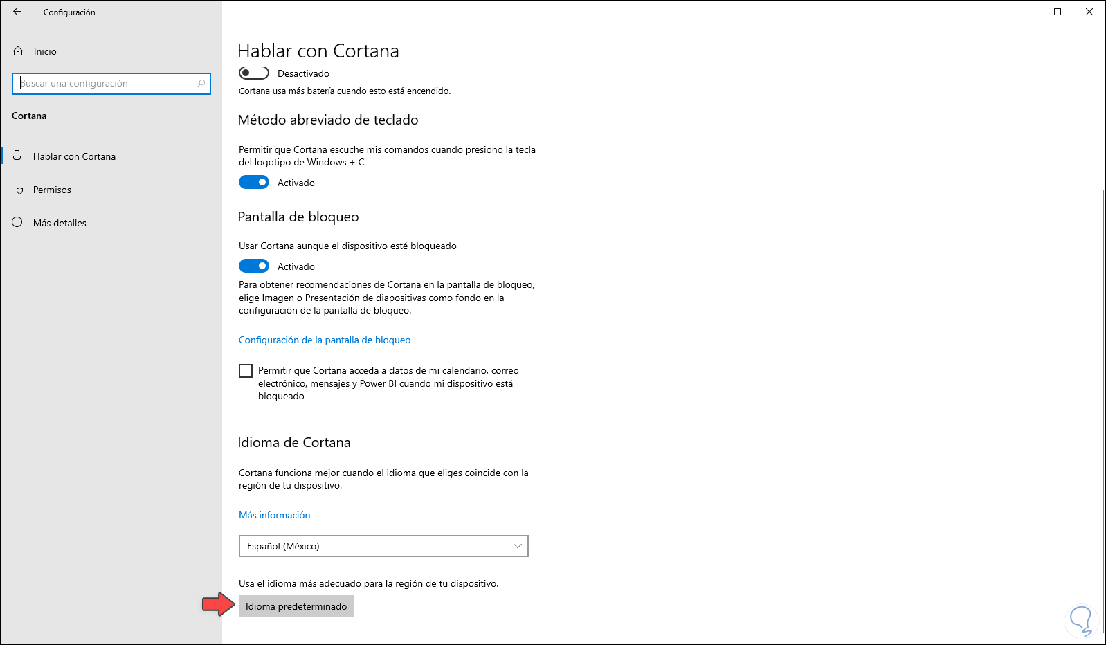 1. Cambiar idioma Cortana Windows 10 como Sistema