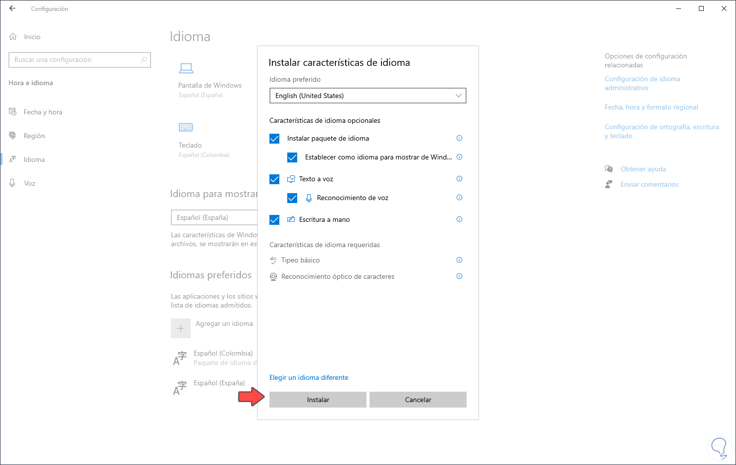 Una vez definido esto damos clic en “Instalar” para iniciar el proceso de instalación de dicho idioma: