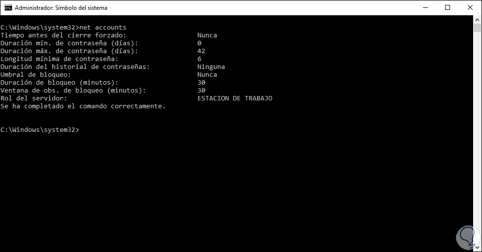 En los resultados nos fijaremos en la línea “Longitud mínima de contraseña” la cual tiene el valor que hemos indicado anteriormente: