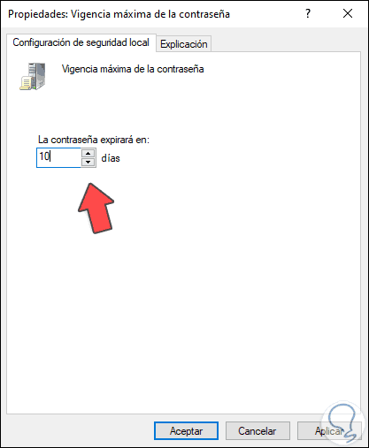Después especificamos cada cuanto debe hacerse el cambio de contraseña por parte del usuario. En ambos casos damos clic en Aplicar y Aceptar para guardar los cambios.