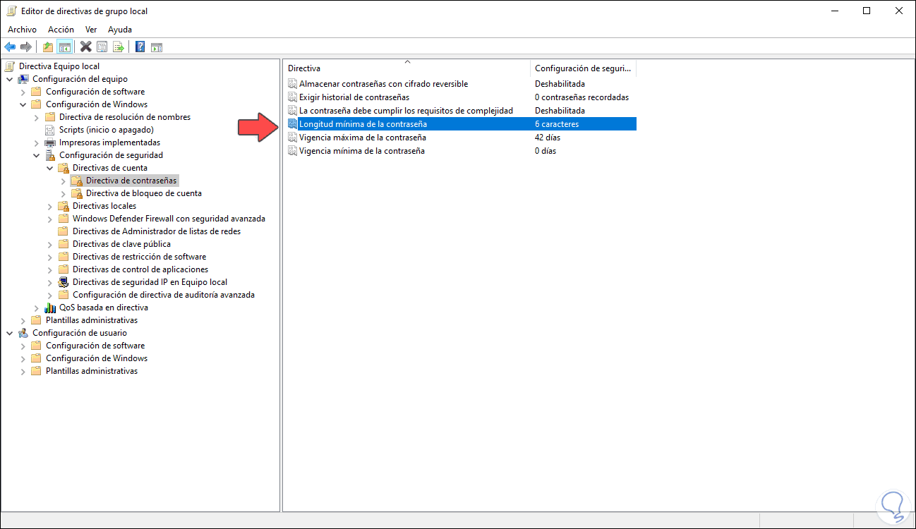 2. Cambiar longitud mínima contraseña Windows 10: GPO longitud contraseña
