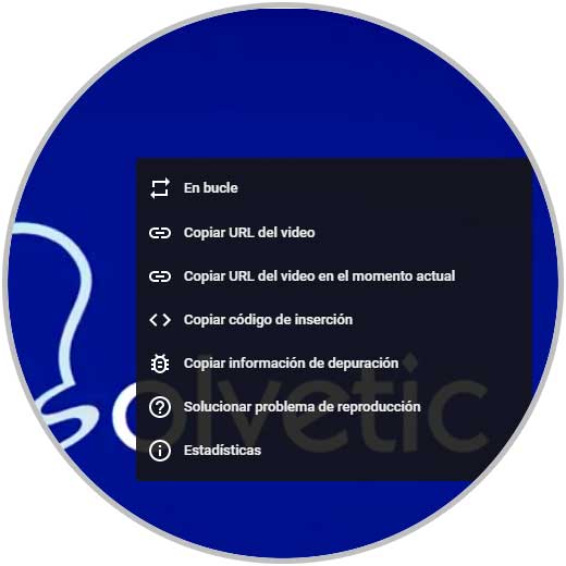 Para ello damos clic derecho sobre el vídeo reproducido e inicialmente veremos lo siguiente: