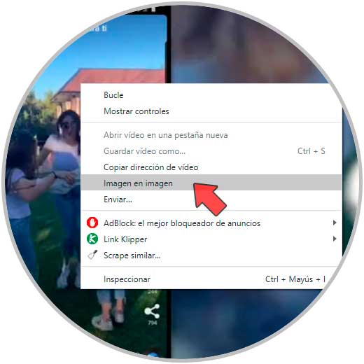 El truco está en tan pronto sale esto dar de nuevo clic derecho y esta vez seleccionar la opción “Imagen en imagen”: