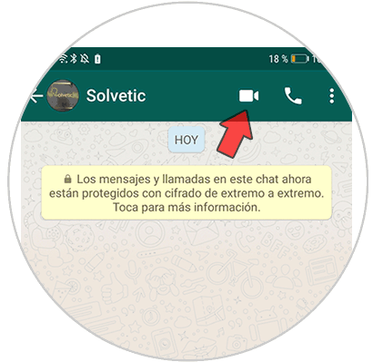 En el caso de que queramos activar la cámara y realizar videollamada, debemos pulsar sobre el símbolo de el vídeo.