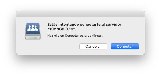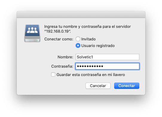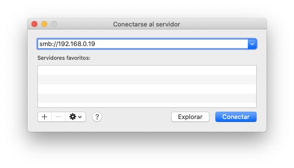 Si deseamos usar este método vamos al menú Ir (de Finder) y seleccionar “Conectar al servidor”, en la ventana emergente ingresamos la siguiente sintaxis: