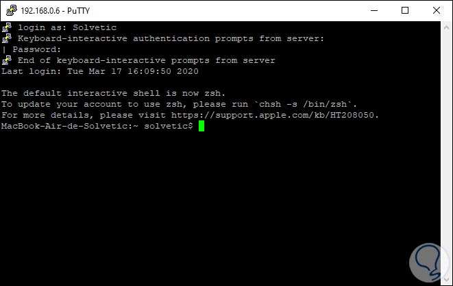 En este caso podemos hacer uso de Putty la cual permite establecer la conexión SSH con macOS, podemos obtenerla en el siguiente enlace: