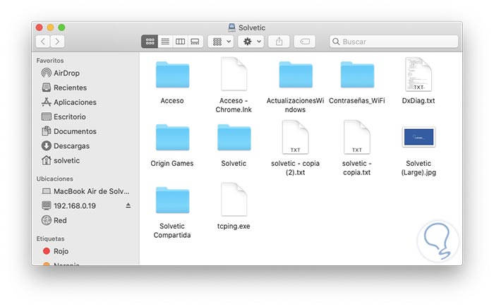 Una vez seleccionado damos clic en “OK” y veremos los archivos del equipo remoto para ser usados con esta opción del escritorio remoto en macOS: