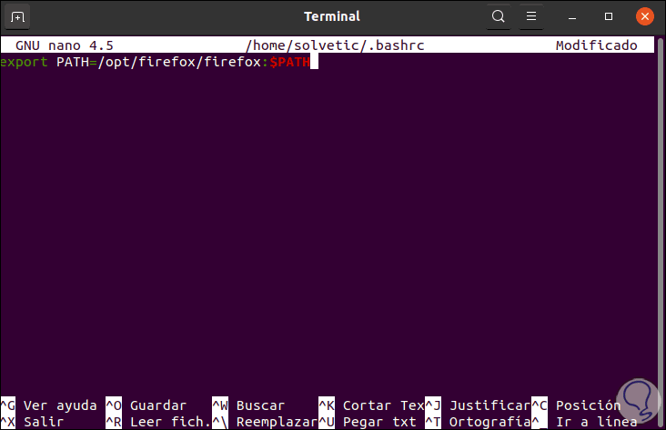 Allí ingresaremos la siguiente línea la cual redirecciona al ejecutable de Firefox: