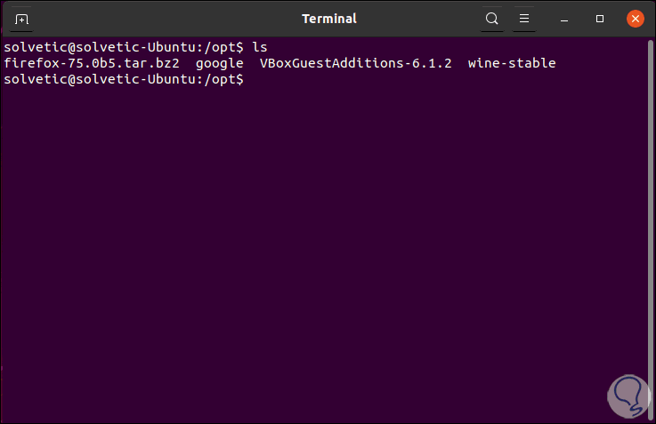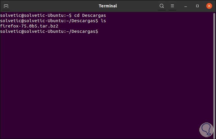 Podemos ejecutar el comando “ls” para listar el archivo de Firefox que hemos descargado: