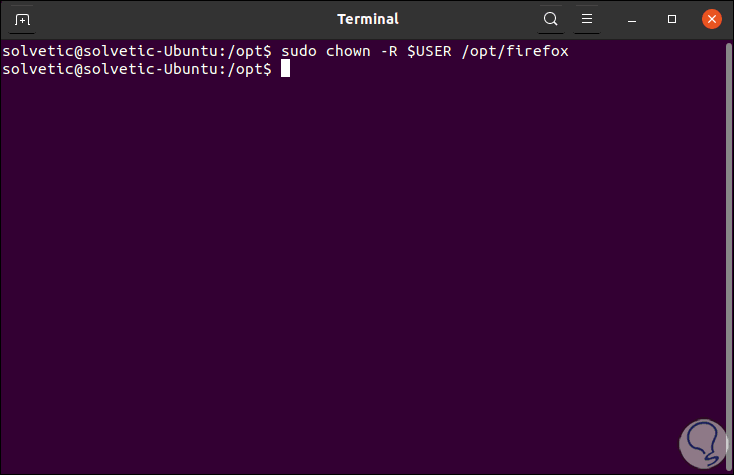 sudo rm -rf firefox-75.0b5.tar.bz2Ahora vamos a cambiar la propiedad de la carpeta donde esta alojado Firefox Developer Edition a /opt/firefox: