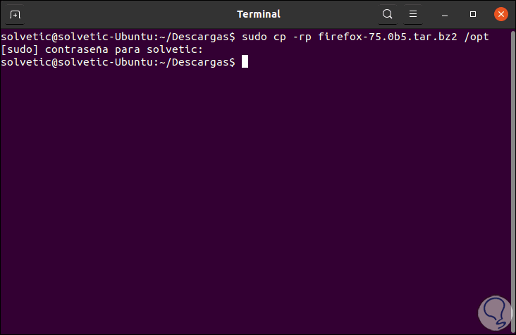 sudo cp -rp firefox-75.0b5.tar.bz2 /opt