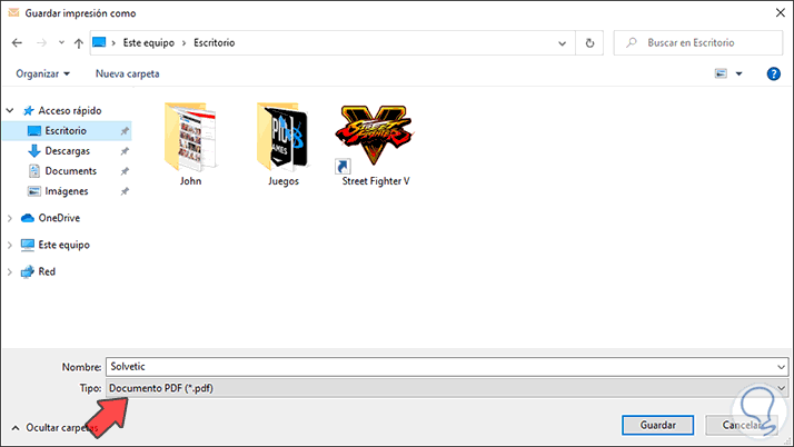 Damos clic en el botón “Imprimir” y luego definimos la ruta y nombre del archivo: