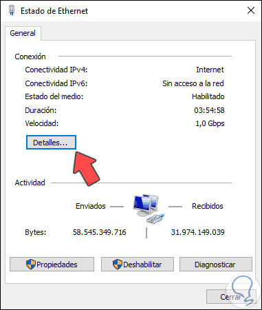 En la parte inferior veremos los detalles de la IP en el campo Dirección IPv4: