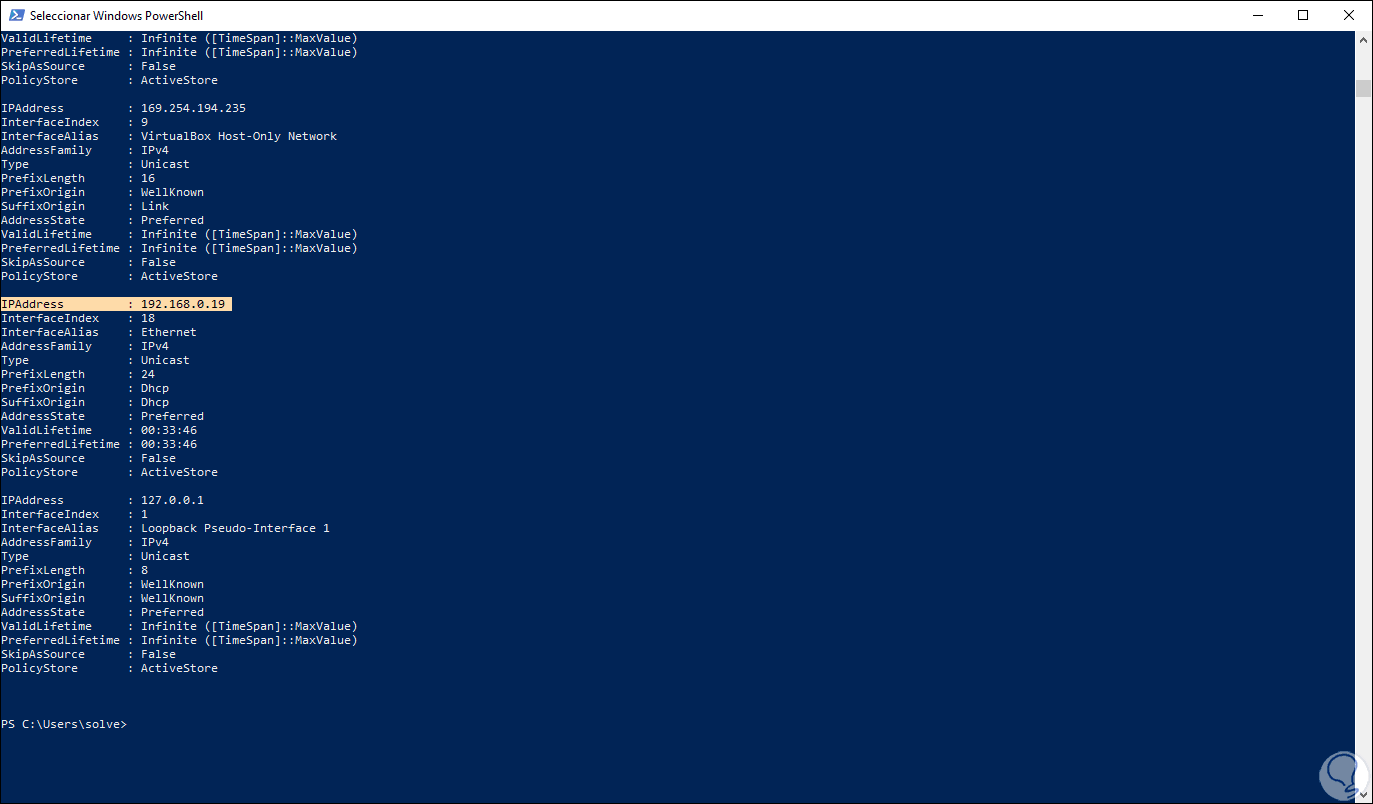 6. Cómo saber mi IP Windows 10 con PoweShell