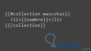 Esta colección recibe una cantidad de elementos, en este caso mascotas y cada una tendría un nombre, luego en nuestra aplicación Javascript tendríamos lo siguiente: