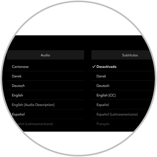 En este momento aparecerán las opciones disponibles tanto e idioma como de subtítulos. Ahora selecciona las opciones que quieres modificar y el contenido habrá quedado configurado.