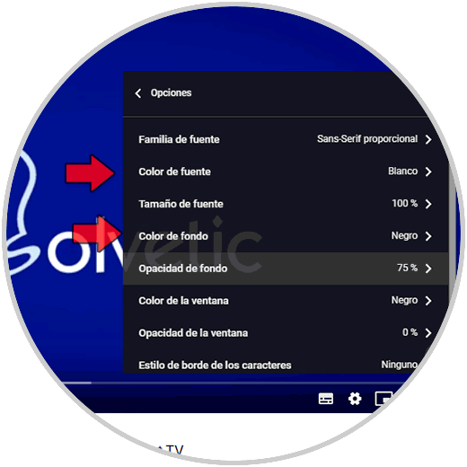 O bien en “Color de texto” para elegir el nuevo color de los subtítulos en YouTube:
