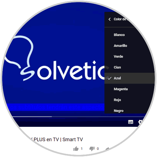 Al seleccionar el color podemos ver como se verá el subtítulo en YouTube: