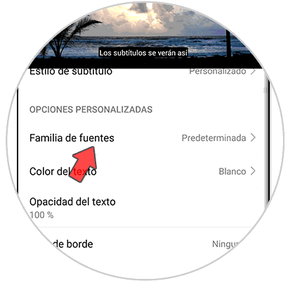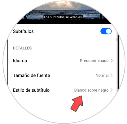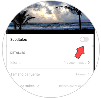 Activamos el interruptor de subtítulos para acceder a las diferentes opciones: