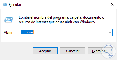 O bien desde Ejecutar ingresando. Damos clic en Aceptar para acceder a Chrome.
