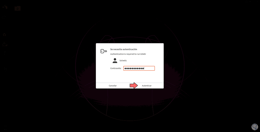 Damos clic en el botón superior “Instalar paquete” y debemos ingresar las credenciales de administrador: