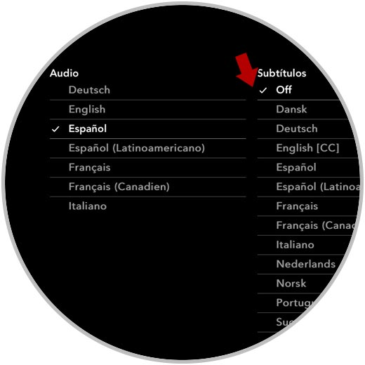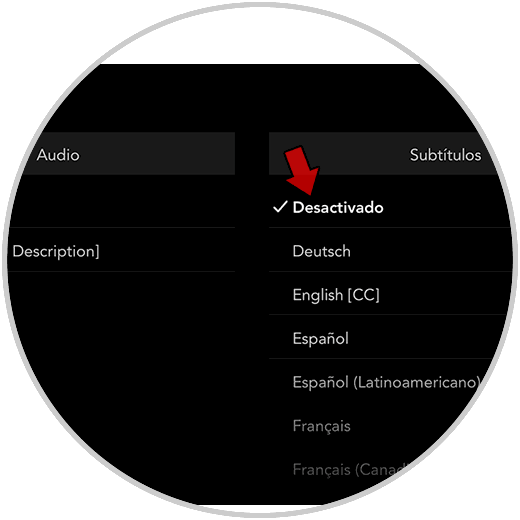 Lo siguiente que debes hacer es pulsar en "Desactivado" para que no aparezcan subtítulos.