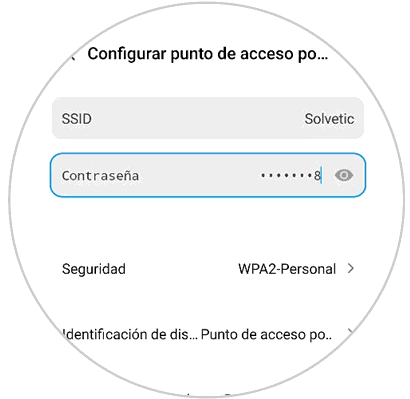 Verás una ventana emergente en la que tienes que escribir el nombre de la red WiFi que quieres compartir. Por lo general se escribe en un área identificada como “SSID”. Es importante que configures una contraseña para ella.