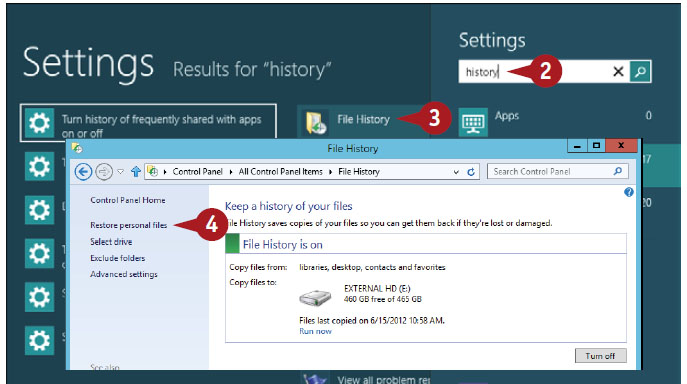 3. Hacemos click en el ícono de File History. Luego de esto nos aparecerá la pantalla de File History.