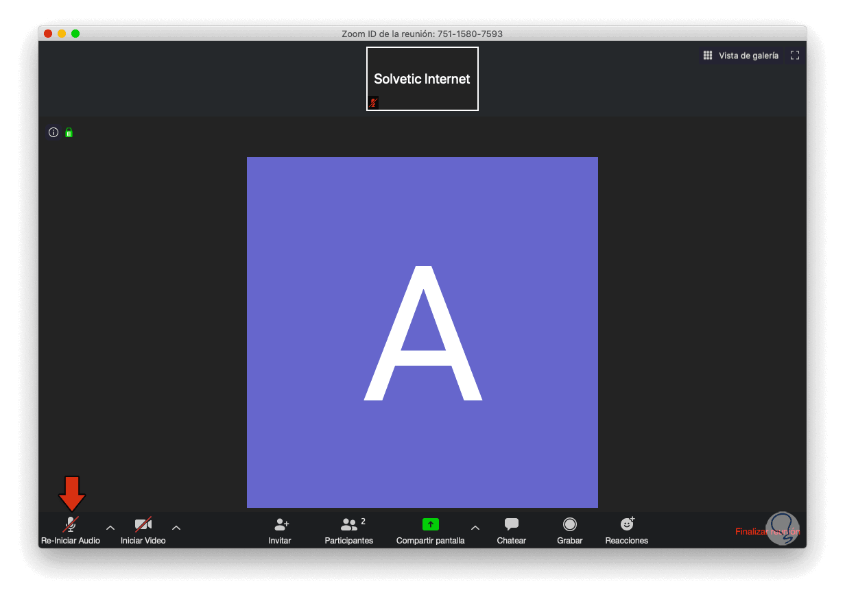Del mismo modo para activar la reunión pulsamos en Re-iniciar Audio: