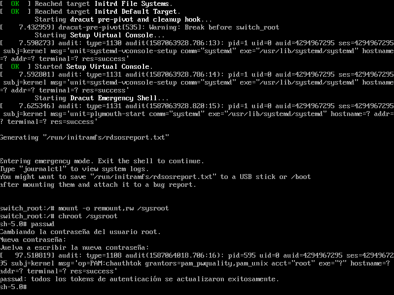 Con esto hemos establecido la contraseña de root en Fedora y dispondremos de acceso nuevamente al sistema.