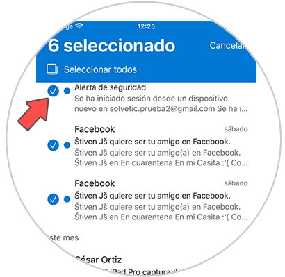 Lo primero que debes hacer es entrar en Outlook y presionar un mensaje de los que quieres borrar. Verás que puedes ir seleccionando todos aquellos que quieres borrar. Pulsa sobre cada uno de ellos.