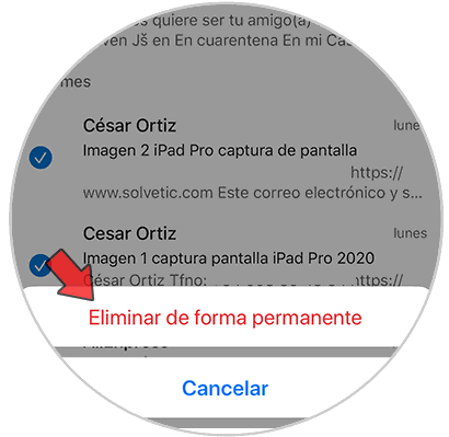 Verás que aparece un mensaje emergente en el que debes seleccionar "Eliminar de forma permanente" para que quede borrar de manera definitiva.