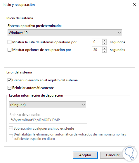 3. Desactivar archivos de volcado de memoria Windows 10