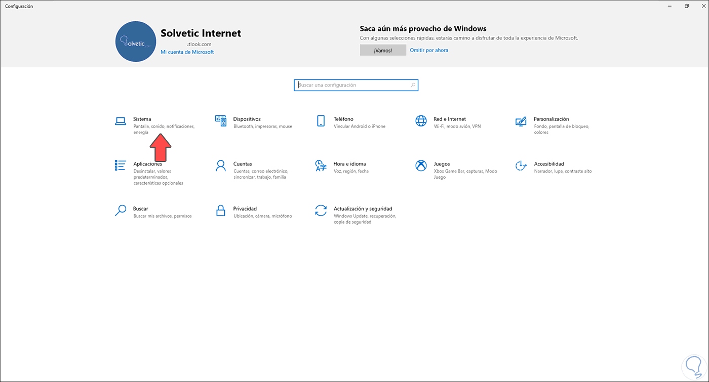 Para esta tarea, vamos a "Inicio – Configuración”