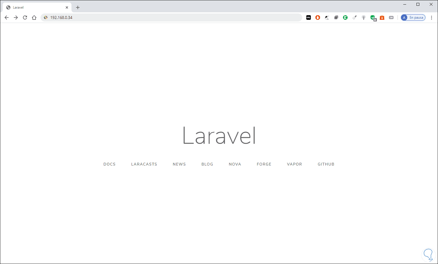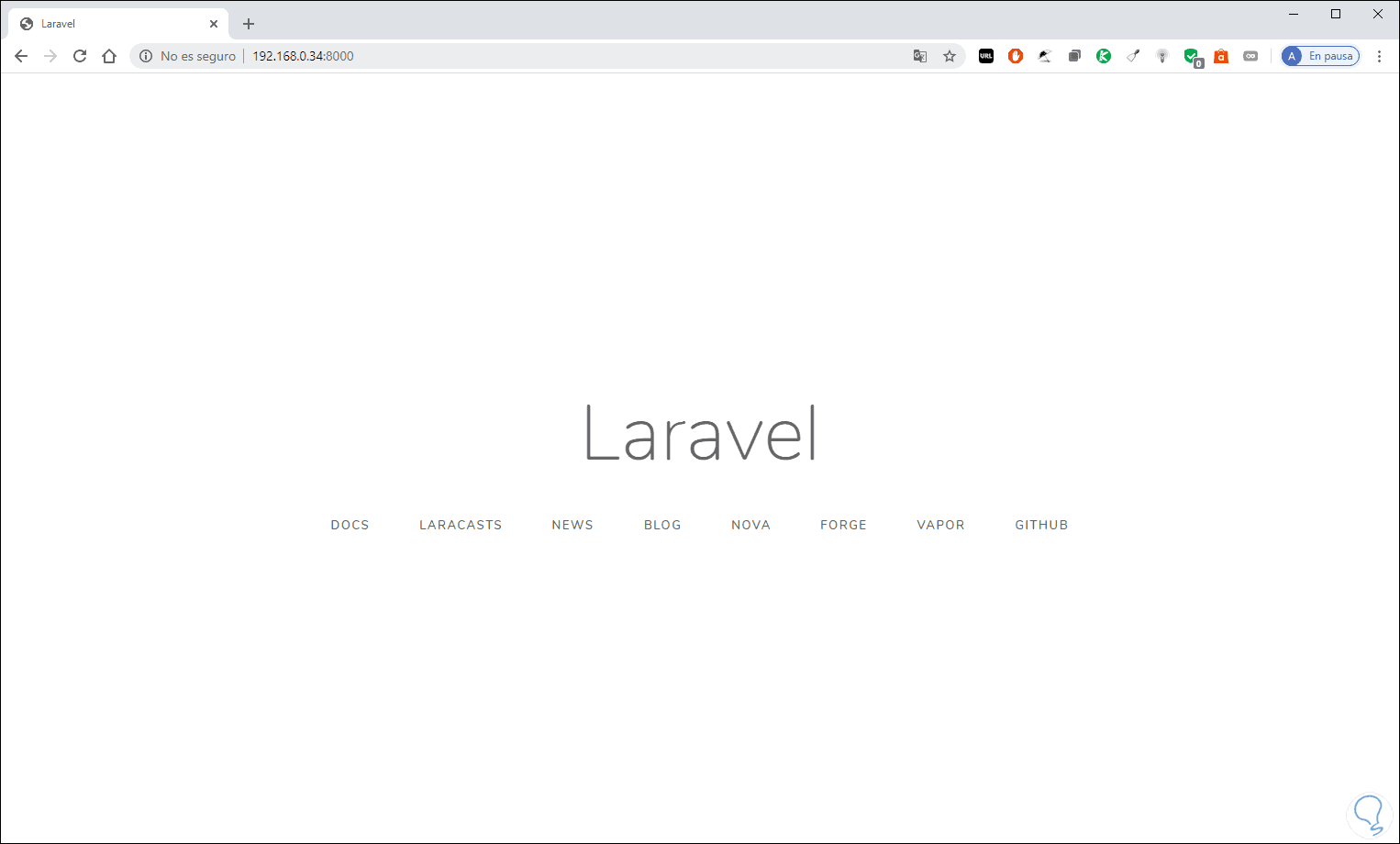 Con esto podremos acceder desde un navegador e ingresar la siguiente sintaxis. Allí contamos con el acceso a Laravel de forma local.