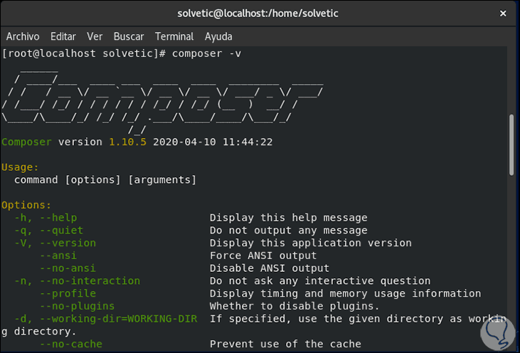 Comprobamos la versión de Composer con el siguiente comando: