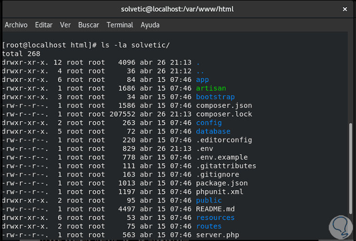 ls -la solvetic/