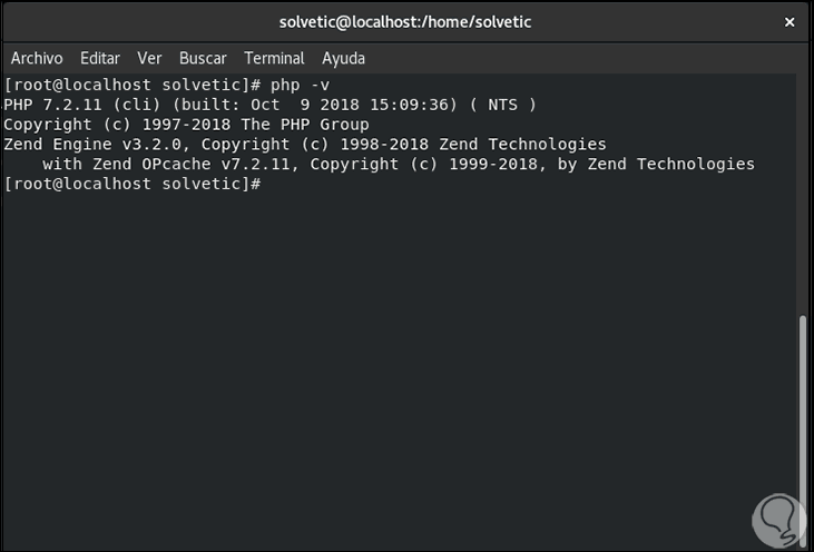 Después de esto comprobamos la versión de PHP ejecutando: