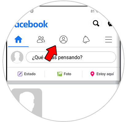 Para este caso usaremos Android, para ello accedemos a Facebook y en primer lugar pulsamos sobre el ícono de perfil (central):