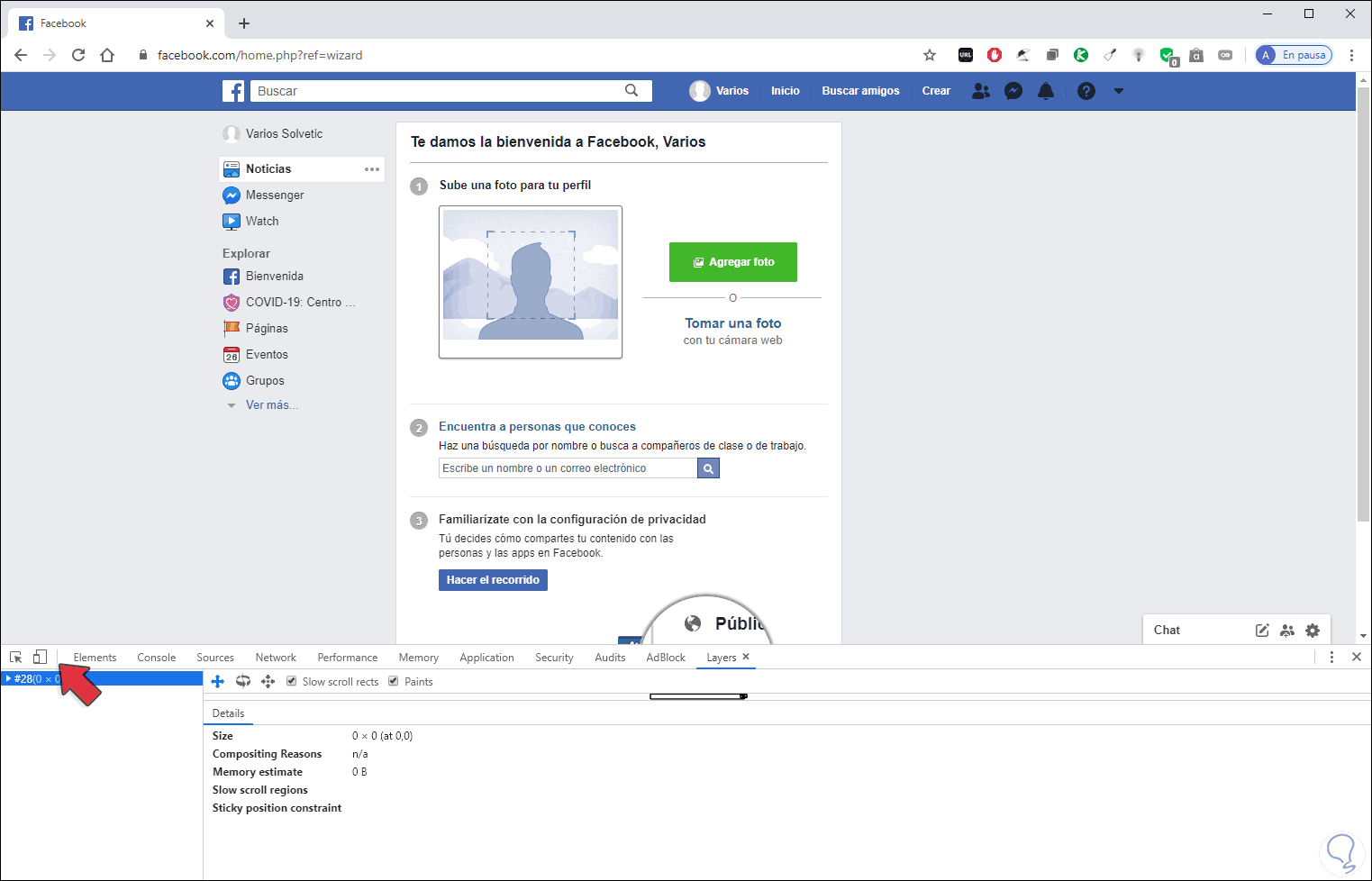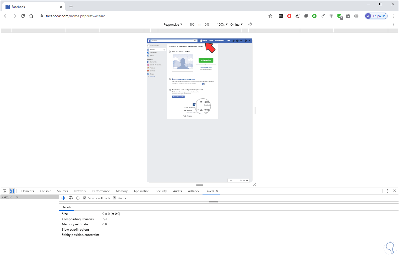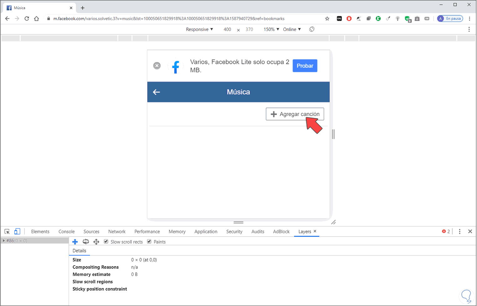 Para poder establecer música en nuestro perfil de Facebook en PC debemos editar el perfil de la página a modo móvil (esto en Google Chrome).