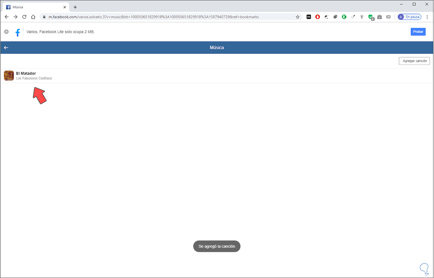 Con este proceso lograremos establecer una canción en el perfil de Facebook.