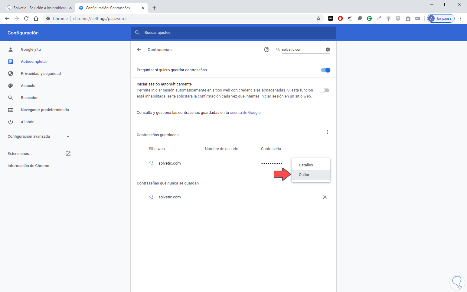 En Google Chrome existe la opción para guardar las contraseñas de los sitios lo cual simplifica el acceso al mismo (pero debemos tener cuidado en quien accede a nuestro equipo) y aunque esto ayuda realmente también existe una carencia y es que Google Chrome no integra la forma de editar o actualizar las contraseñas guardadas en el navegador. Sabemos que por políticas de seguridad lo más recomendables es cambiar las contraseñas con cierta frecuencia, por ello Solvetic te explicará la forma como podemos actualizar y ver las contraseñas guardadas en Google Chrome.
